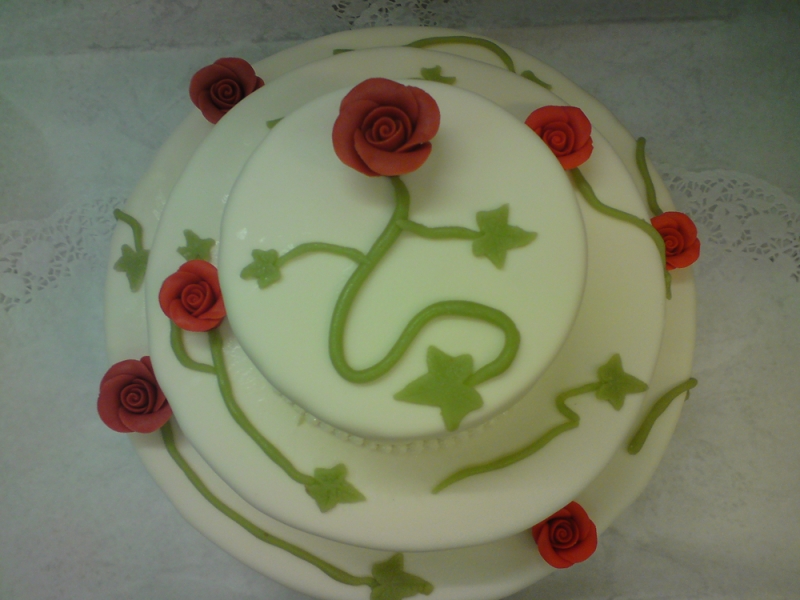 Hochzeitstorte mit roten Rosen (Nr.6)